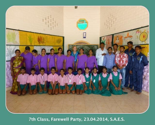 On April 23rd 2014 we celebrated our third farewell party for the 7th class students who left the school. Most of them will attend High Schools - in Kadiri, Mudigubba and other places. This time the farewell party took place in the entrance area of the administration building - for the very first time! Klaus (Prema) created the nice photo of our 7th class students (from left to right: Bharath, Rajesh, Shiva Kumar, Venkatanaidu, Sreekanth, Vijay Kumar, Pavan, Shalini, Haritha, Shirisha and Mounika - Anil was absent) and our school staff including the Karate teachers (right side).